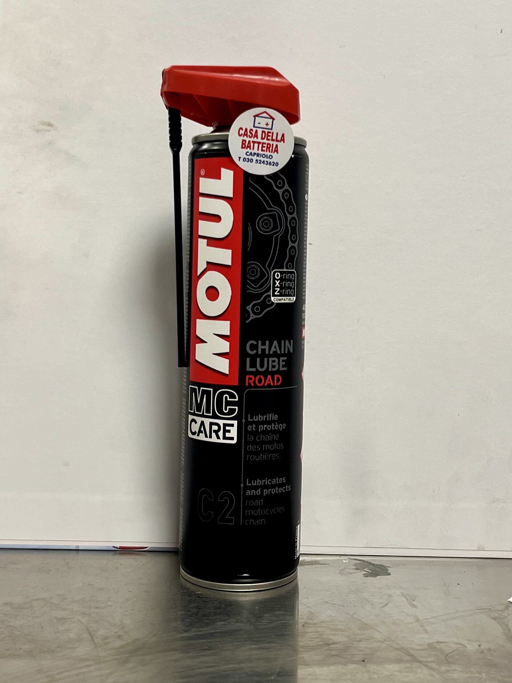 Particolarmente consigliato su motocicli molto veloci: MOTUL CHAIN LUBE ROAD aderisce alla catena anche alle alte velocità e ad alto numero di giri.